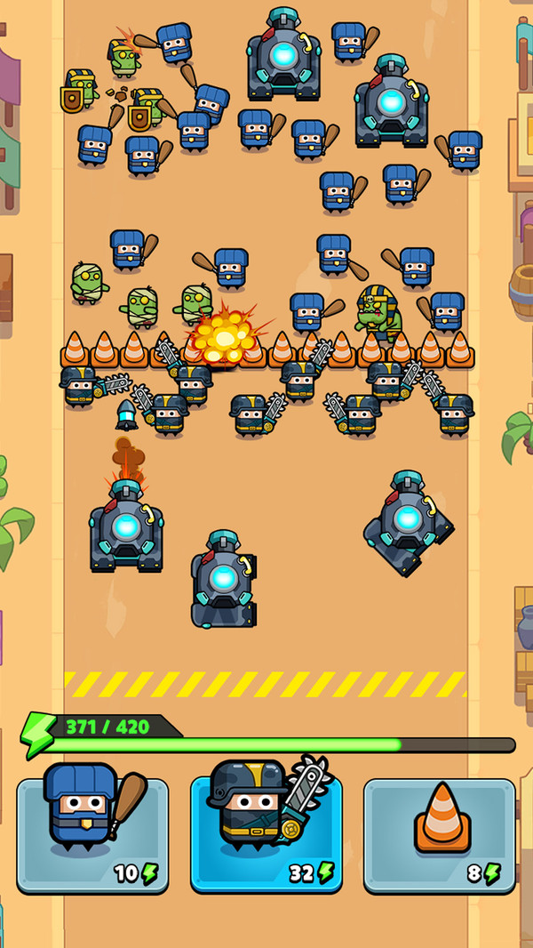 2. 多样化的防御塔:提供多种类型的防御塔,包括火力强大的机枪塔、减速效果的冰霜塔、范围攻击的火焰塔等,玩家需根据战局灵活搭配。